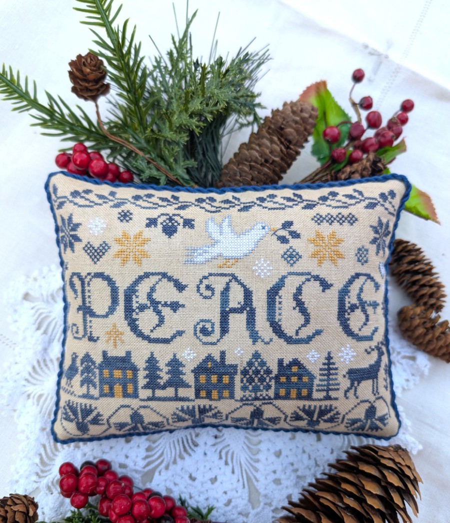 Winter Blessings is stitched on 40 ct. Oaken by Picture This Plus. Stitch count is 63w x 71h.